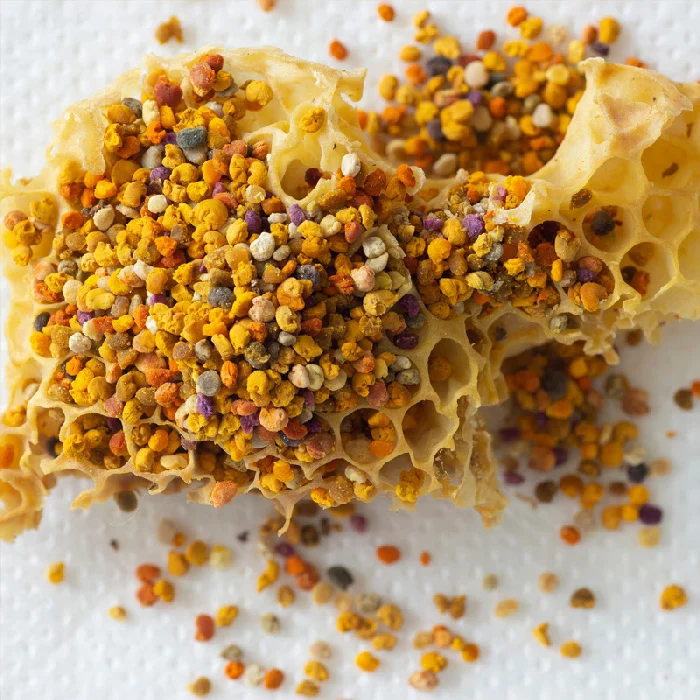 گرده گل، غذای اصلی زنبورهای عسل و یکی از غنیترین مواد طبیعی جهان است؛ پر از پروتئین، ویتامینها، مواد معدنی و آنتیاکسیدانها – بیش از ۲۵۰ ترکیب فعال!