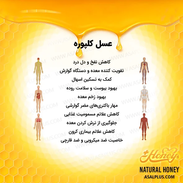 عسل کلپوره به دلیل دارا بودن ترکیبات آنتیباکتریال و ضدالتهابی، برای تقویت سیستم ایمنی، بهبود هضم و کاهش التهابات گوارشی مفید است. همچنین به عنوان ضدسرفه طبیعی، کاهش دردهای عضلانی و تنظیم قند خون استفاده میشود.