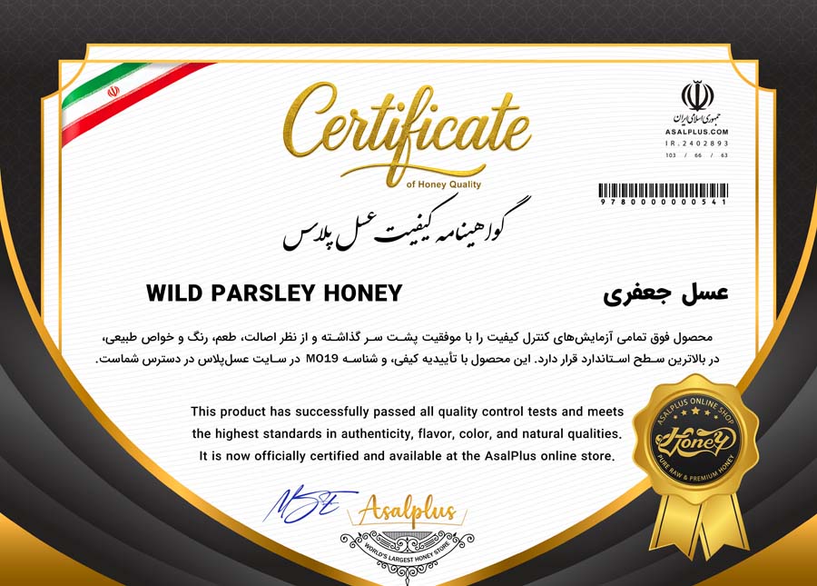 دریافت گواهینامه ISO 9001 نشان‌دهنده‌ی تعهد عسل پلاس به کیفیت پایدار و رضایت مشتری است. تمامی مراحل تولید، کنترل و بسته‌بندی عسل مطابق با استانداردهای بین‌المللی کیفیت انجام می‌شود تا هر قطره عسل، همان طعم و خلوص واقعی طبیعت را حفظ کند.